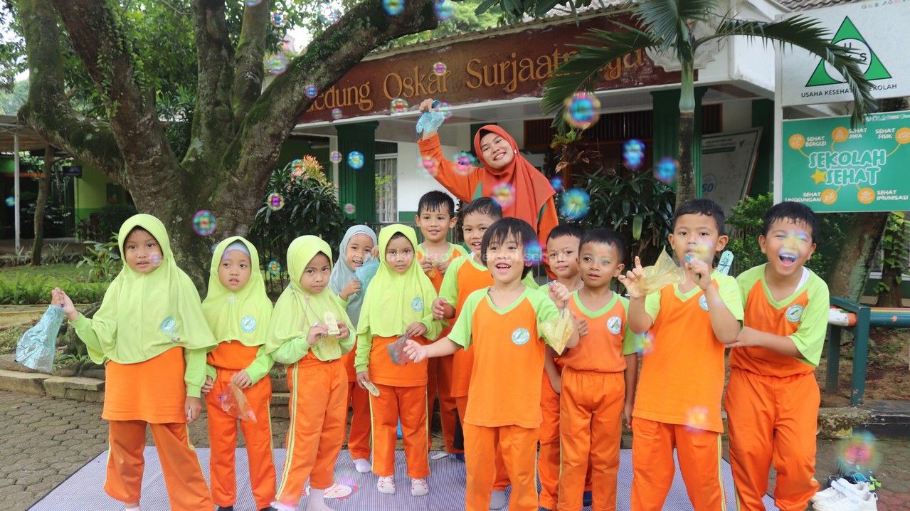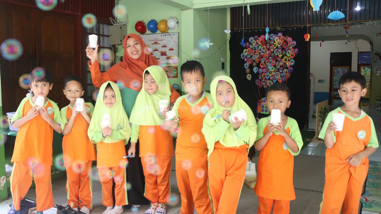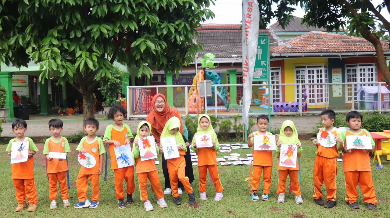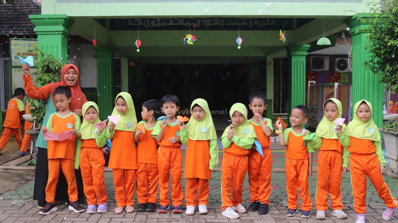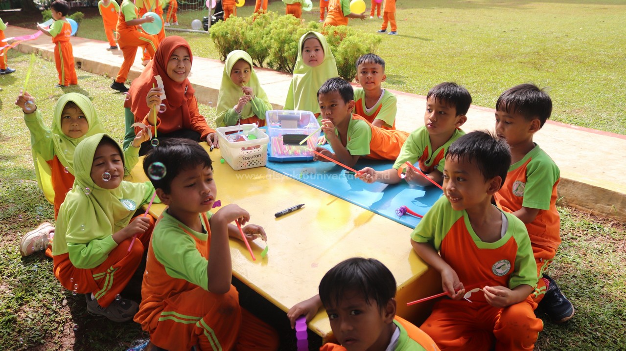 Kegiatan KB/TK Islam Al Syukro Universal yang merupakan penunjang tema "Udara Bersih Karunia Allah SWT" dengan desain beraneka ragam kreatifitas yang dilakukan di area hijau sekolah Al Syukro Universal.