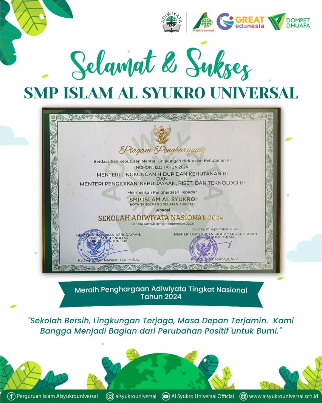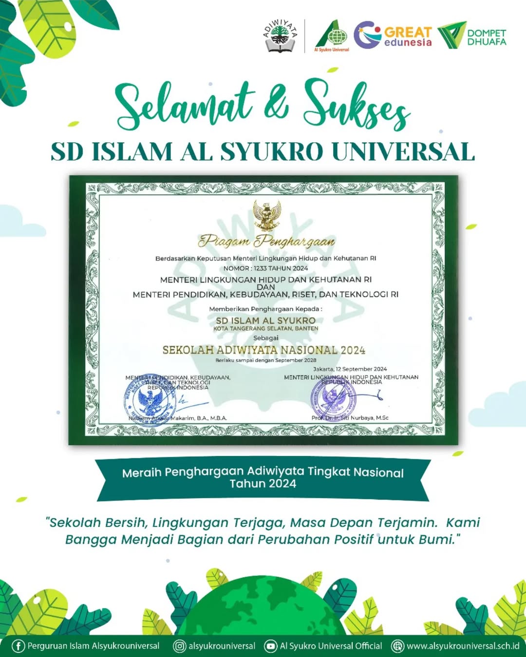 SEKOLAH ISLAM BERBASIS KARAKTER DAN LINGKUNGAN