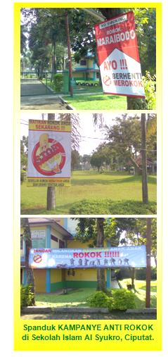 Kampanye ANTI ROKOK di lingkungan Sekolah Islam Al Syukro, kata Pak Haji Rohim---sapaan akrabnya---berlaku untuk umum atau ‘mengikat’ siapa saja yang berada di dalam lingkungan sekolah.