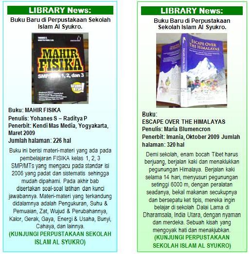 Kedua buku ini telah tersedia di Perpustakaan Sekolah Islam Al Syukro. Silakan berkunjung ke Perpustakaan Sekolah Islam Al Syukro, untuk meminjam dan (atau) membacanya. (fdl)