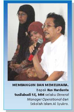 Menurut Pak Kus, sapaan akrabnya, dengan telah selesainya pembangunan Gedung PSB ini, maka diharapkan akan dapat banyak diambil manfaat bagi seluruh siswa, guru dan staf yang ada di lingkungan Sekolah Islam Al Syukro.