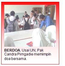 Saya yakin, siswa-siwa kami pasti akan tetap berperilaku sopan usai UN, karena bukankah mereka juga belum tahu apakah benar akan lulus atau tidak. Dengan siswa tetap berperilaku sholeh dan sholehah, maka insya Allah SWT akan membalas kebaikan perilaku ini dengan yang terbaik, atau nilai kelulusan yang terbaik! (hrfadli)