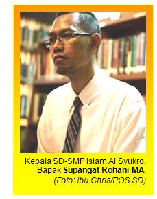 Berbincang tentang Dunia Pendidikan bersama dengan Bapak Supangat Rohani MA, Kepala SD/SMP Islam Al Syukro memang mengasyikkan. Sebagai pemerhati sekaligus praktisi Pendidikan, cermatannya begitu mendalam ketika menilai konsep dan metodologi transfer ilmu melalui lembaga pendidikan.