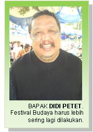 Menurut Pak Didi Petet yang pernah memerankan tokoh Emon dalam Film Catatan si Boy di era 1980-an ini, acara Festival Budaya yang digagas dan dilaksanakan oleh Persatuan Orangtua Siswa (POS) SD Islam Al Syukro patut diapresiasi tinggi dan semestinya lebih diperbanyak. “Jangan hanya satu tahun sekali saja,” tuturnya kepada H.R Fadli reporter www.alsyukro- yadai.com. Berikut, petikan wawancara dengan Pak Didi Petet: