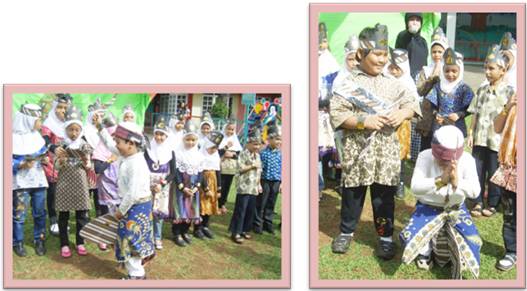 KIRI: Dalam Parade Kostum Batik, siswa dan siswi kelas I-C memperagakan busana daerah Jawa Barat.
