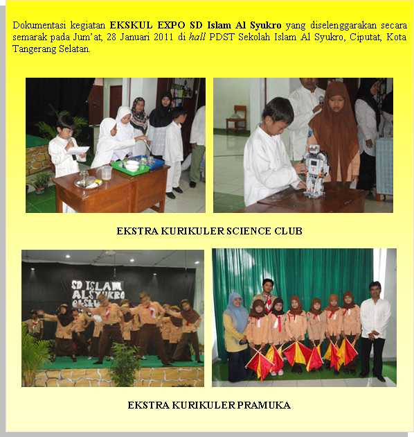 EKSKUL EXPO SD Islam Al Syukro (5) Perguruan Islam Al Syukro Universal Berita SD 02 February 2011 Hits: 2885