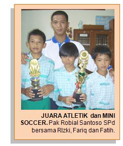 Ditambahkan, untuk kompetisi Mini Soccer, jumlah pesertanya dalam satu tim adalah tujuh orang. “Untuk Fatih Ahmad Ferda Hanif, ia memang handal bila bermain sebagai pengatur serangan tim, dan ia pun bisa cepat ‘turun’ untuk ikut membantu pertahanan. Sedangkan M Rizki, karena postur tubuhnya yang memang jangkung, terlihat sangat menonjol bakatnya sebagai keeper,” kata Pak Robi yang lulusan Universitas Negeri Semarang, Jurusan Pendidikan Kepelatihan Olahraga pada tahun 2008.