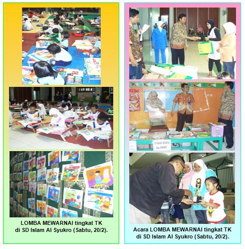 SD Islam Al Syukro menggelar acara khusus untuk memperingati Maulid Nabi Muhammad saw. Pada Sabtu pagi, 20 Februari 2010 di hall Gedung PDST Sekolah Islam Al Syukro, Ciputat, kegiatan itu adalah ”Lomba Mewarnai” untuk tingkat Taman Kanak-Kanak (se-Ciputat dan Pamulang). Lomba ini diikuti oleh hampir 80 orang perwakilan siswa dari 16 TK se-Ciputat dan Pamulang, Kota Tangerang Selatan (Tangsel). Berikut, adalah foto-foto saat Lomba Mewarnai tersebut: