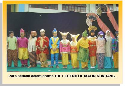Ini drama berbahasa Inggris dengan legenda rakyat Malin Kundang yang sudah familiar bagi anak-anak. Tapi, karena ingin menonjolkan bahwa sekolah ini adalah bilingual, maka kita men-translate-nya dalam bahasa Inggris menjadi The Legend of Malin Kundang.