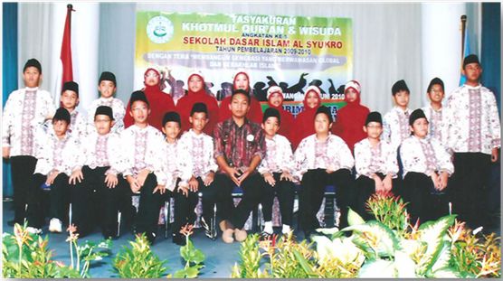 Acara KHOTMUL QUR’AN DAN WISUDA ANGKATAN KE-V SD ISLAM AL SYUKRO TAHUN PEMBELAJARAN 2009/2010, diselenggarakan pada Minggu (20 Juni 2010) di Gedung Semeru, Pusat Pengembangan dan Pemberdayaan Pendidik dan Tenaga Kependidikan (P4TK) Bisnis dan Pariwisata di Jln Raya Parung Km.22-23 Bojongsari, Sawangan, Depok. Berikut adalah dokumentasi foto para wisudawan tersebut: