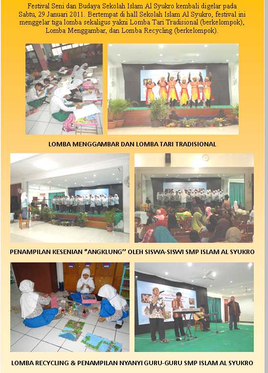 "Festival Seni Dan Budaya" SD Islam Al Syukro (3) Perguruan Islam Al Syukro Universal Berita SD 04 February 2011 Hits: 3625