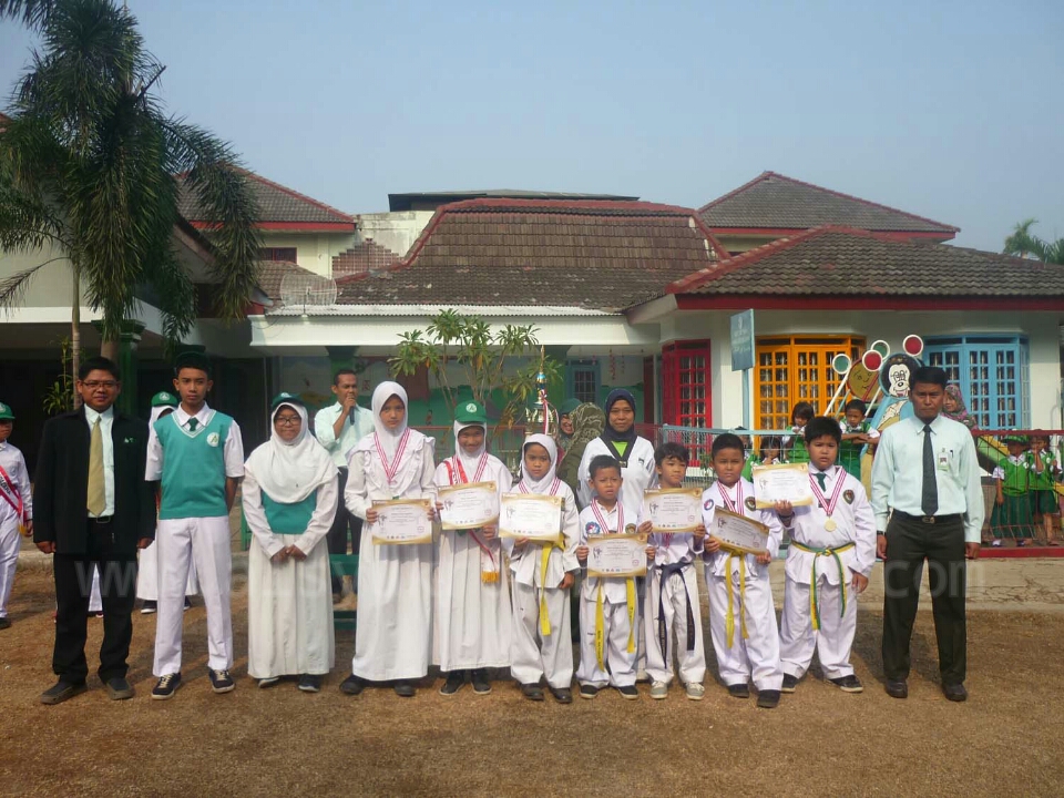 Penyerahan medali kepada para atlet taekwondo disaksikan oleh pasangan Ketua OSIS SMP Islam Al Syukro Universal, Rafsanjani-Sherina. Disaksikan juga oleh seluruh siswa-siswi SD dan SMP Islam Al Syukro Universal – Ciputat – Tangerang Selatan. (MB)