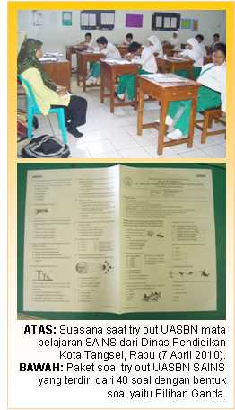Katanya lagi, pelaksanaan try out UASBN bagi siswa kelas VI SD Islam Al Syukro ini, dilaksanakan sedemikian rupa, termasuk penempatan siswa di empat ruang kelas, seperti yang sedianya akan dilaksanakan seperti kelak saat UASBN.