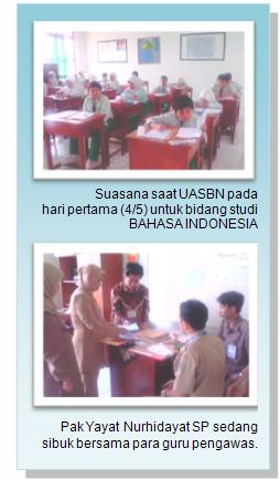 “Setelah pelaksanaan UASBN yang secara serentak dan nasional, kami melanjutkannya dengan UAS dengan rincian jadwalnya adalah: Bidang studi Agama dan juga Pendidikan Kewarganegaraan (PKn) yang dilaksanakan pada 7 Mei 2010. Lalu, Bahasa Inggris dan IPS pada 8 Mei 2010, serta Bahasa Arab dan Teknologi Informatika Komputer pada tanggal 10 Mei 2010,” jelasnya. (fdl)
