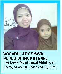 Di lain pihak, Ibu Dewi Mualimatul Alifah, Guru Bahasa Inggris SD Islam Al Syukro menegaskan, untuk UTS Bahasa Inggris yang dilaksanakan pada Jum’at, 12 Maret 2010, mengupas tentang tiga bab materi yang telah disampaikan dalam pembelajaran rutin di kelas.
