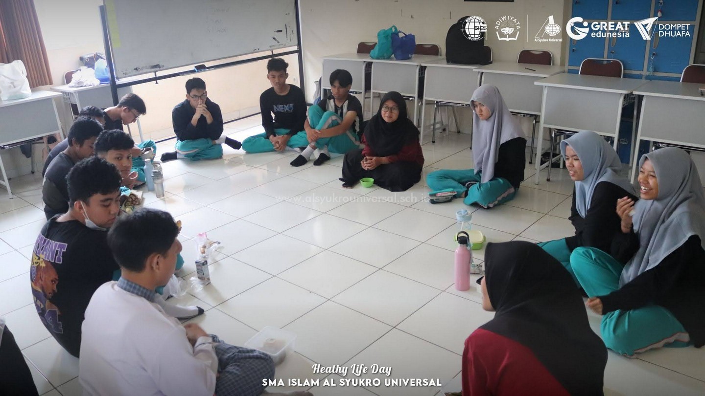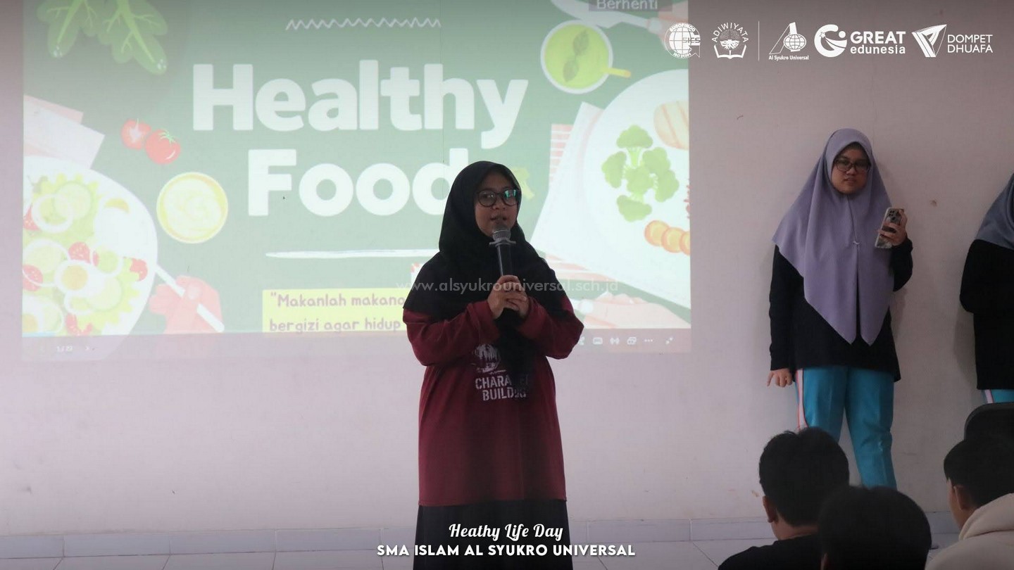 Dalam rangka memperingati Hari Gizi Nasional, SMA Islam Al Syukro Universal menyelenggarakan kegiatan bertema “Healthy Life Day” pada Jumat, 23 Januari 2026. Kegiatan ini diikuti oleh seluruh siswa dan siswi SMA Islam Al Syukro Universal sebagai bentuk komitmen sekolah dalam menumbuhkan kesadaran akan pentingnya gizi seimbang dan pola hidup sehat di lingkungan sekolah.