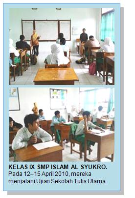 12 -15 April 2010, Ujian Sekolah Tulis Utama kelas IX SMP Islam Al Syukro