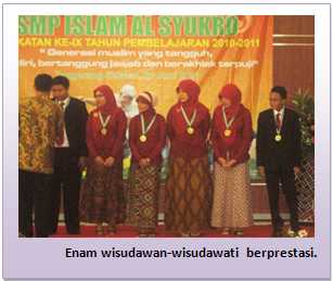 Saat acara wisuda berlangsung, salah satu mata acara yang dinantikan adalah pengumuman siswa berprestasi. Dan enam siswa wisudawan-wisudawati SMP Islam Al Syukro yang dinyatakan berprestasi adalah: