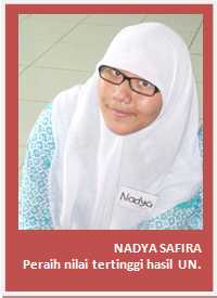 Dan bidang studi Matematika, peraih nilai tertinggi adalah NADYA SAFIRA dengan nilai 9,00. Selain meraih nilai tertinggi untuk Matematika, NADYA SAFIRA juga menjadi peraih nilai tertinggi untuk seluruh tiga bidang studi pada UN, yaitu dengan nilai rata-rata mencapai 8,8. (fdl)