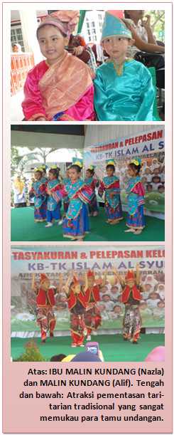 “Tema acara Tasyakuran dan Pelepasan Kelompok B kali ini memang memfokus pada hikayat rakyat Sumatera Barat yakni Malin Kundang, tetapi di-setting dengan sejumlah penyesuaian terkini, yang lebih modern dan aktual, misalnya digambarkan Malin Kundang menjadi pengusaha sukses yang pandai menggunakan perangkat multimedia, semisal komputer jinjing atau lap top,” kata Bapak Imam Yahya selaku salah seorang guru di TK Islam Al Syukro-Otista, Ciputat.