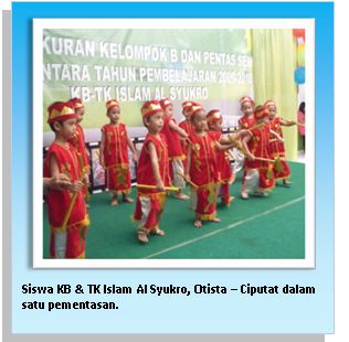 Pada bulan Agustus---yang bertepatan juga dengan bulan suci Ramadhan 1431 Hijriah---ini, Kelompok Bermain dan Taman Kanak-Kanak (KB & TK) Islam Al Syukro, Otista – Ciputat telah menetapkan acuan tema pembelajaran yakni ‘AKU IKHLAS BERPUASA KARENA ALLAH SWT’.