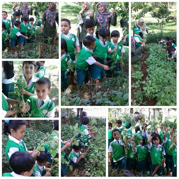 Siswa-Siswi TK Islam Al Syukro Memanen Bayam di Kebun Sekolah