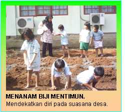 Menurut salah seorang Guru KB-TK Islam Al Syukro, Ibu Heni Nurholifah, selain mempelajari secara teori, para siswa juga diajak untuk bercocok tanam seperti di desa (Rabu, 3 Maret 2010).